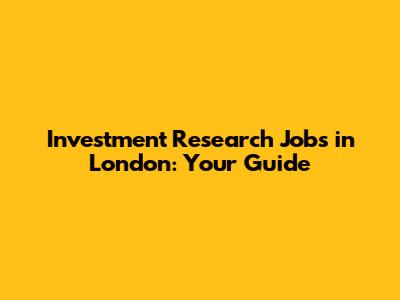 Investment Research Jobs In London: Your Guide