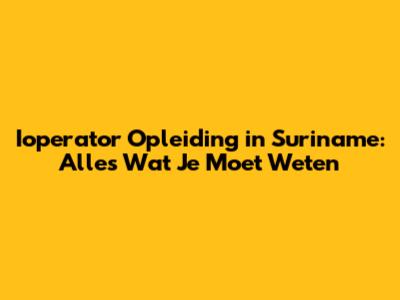 Ioperator Opleiding In Suriname: Alles Wat Je Moet Weten