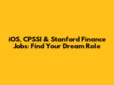 IOS, CPSSI & Stanford Finance Jobs: Find Your Dream Role