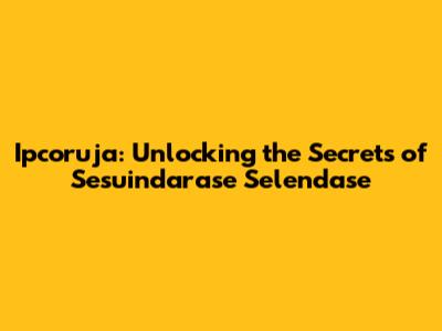 Ipcoruja: Unlocking The Secrets Of Sesuindarase Selendase