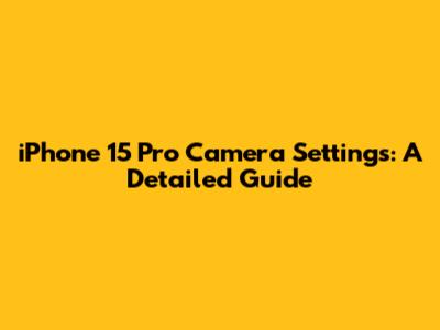 IPhone 15 Pro Camera Settings: A Detailed Guide