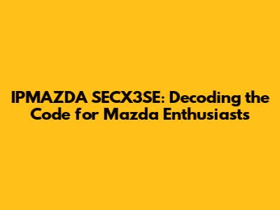 IPMAZDA SECX3SE: Decoding The Code For Mazda Enthusiasts