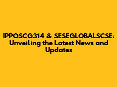 IPPOSCG314 & SESEGLOBALSCSE: Latest News And Updates