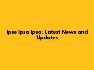 Ipse Ipsa Ipsa: Latest News And Updates