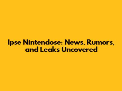 Ipse Nintendose: News, Rumors, And Leaks Uncovered