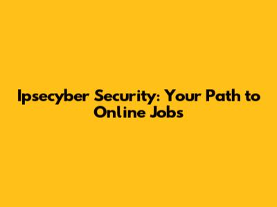 Ipsecyber Security: Your Path To Online Jobs