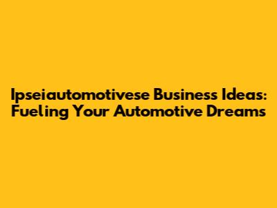 Ipseiautomotivese Business Ideas: Your Path To Automotive Success