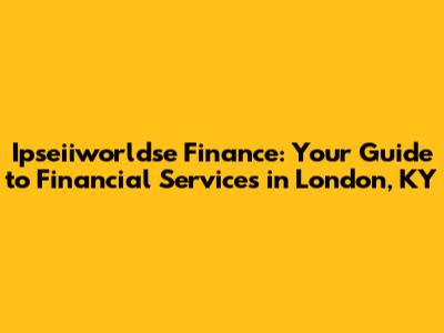 Ipseiiworldse Finance: Your Guide To Financial Services In London, KY