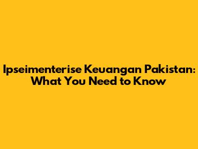 Ipseimenterise Keuangan Pakistan: What You Need To Know