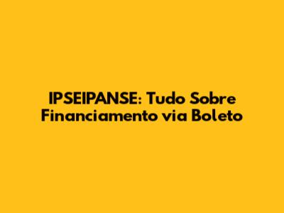 IPSEIPANSE: Tudo Sobre Financiamento Via Boleto