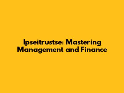 Ipseitrustse: Mastering Management And Finance