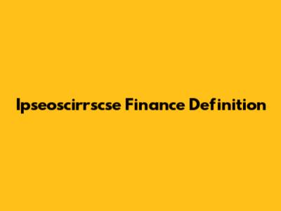 Ipseoscirrscse: Decoding The Finance Term