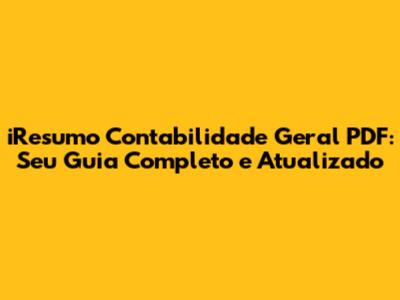 IResumo Contabilidade Geral PDF: Guia Completo E Atualizado