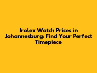 Irolex Watch Prices In Johannesburg: Find Your Perfect Timepiece