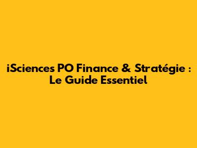 ISciences PO Finance & Stratégie : Le Guide Essentiel
