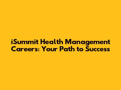 ISummit Health Management Careers: Your Path To Success