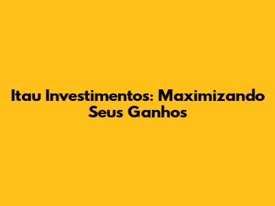 Itau Investimentos: Maximizando Seus Ganhos