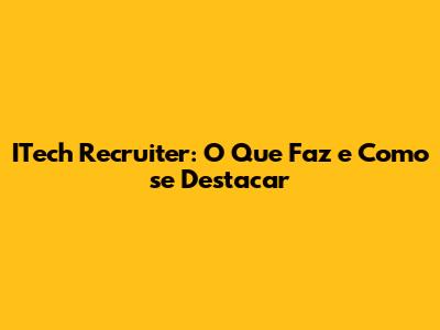 ITech Recruiter: Desvendando O Que Faz E Como Se Destacar