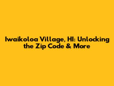 Iwaikoloa Village, HI: Unlocking The Zip Code & More