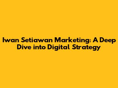 Hey guys! Let's dive into the world of Iwan Setiawan and his approach to marketing. This is going to be a fun exploration of digital marketing, brand building, and all the cool stuff that makes businesses thrive online. Get ready to learn some killer strategies that could seriously level up your game, whether you're a seasoned marketer or just starting out. Iwan Setiawan's expertise spans various aspects of digital marketing, offering valuable insights for businesses aiming to enhance their online presence and achieve sustainable growth. Understanding his methods can provide a significant advantage in today's competitive digital landscape.