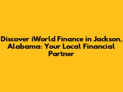 Hey everyone! Today, we're diving deep into a local gem that's making waves in the financial world right here in Jackson, Alabama: iWorld Finance. If you're looking for personalized financial services, a team that understands your unique needs, and a commitment to your success, you've come to the right place. We're going to explore what makes iWorld Finance stand out, the services they offer, and why they're a go-to for so many in the Jackson area. Get ready to learn all about how iWorld Finance can help you navigate your financial journey with confidence.