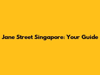 Jane Street Singapore: Your Guide