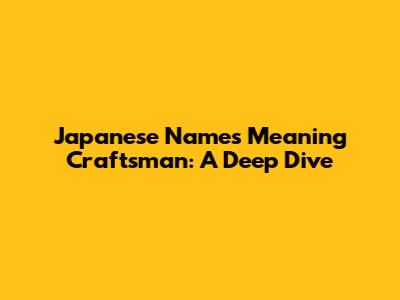 Japanese Names Meaning Craftsman: A Deep Dive