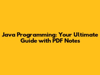 Java Programming: Complete Guide And PDF Notes