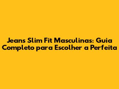 Jeans Slim Fit Masculinas: Guia Completo Para Escolher A Perfeita