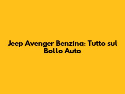 Jeep Avenger Benzina: Tutto Sul Bollo Auto
