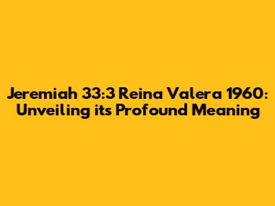 Hey guys! Have you ever stumbled upon a Bible verse that just sticks with you, making you wonder what it truly means? Well, Jeremiah 33:3 from the Reina Valera 1960 version is one such verse. It's short but packs a punch, and we're going to break it down together. So, grab your Bibles (or open your Bible app), and let’s dive deep into this powerful scripture!