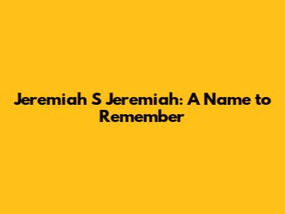 Given the unique structure of the name Jeremiah S Jeremiah, it's natural to ponder the fields where such an individual might have made a significant impact. The name 'Jeremiah' carries weight, often associated with prophecy, leadership, and resilience – qualities that can translate into various professional and personal endeavors. Let's brainstorm some areas where Jeremiah S Jeremiah could potentially shine.