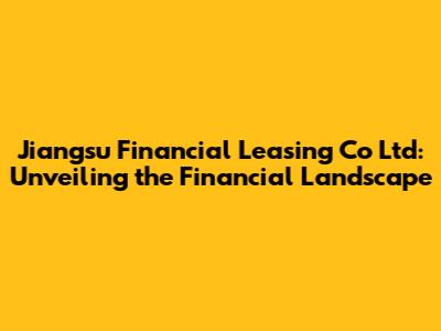 Hey everyone! Let's dive into the world of Jiangsu Financial Leasing Co Ltd, a company that plays a crucial role in China's financial sector. This article will provide you with a comprehensive overview of Jiangsu Financial Leasing, exploring its operations, significance, and impact on the financial landscape. We'll break down everything from its core business activities to its strategic importance. So, grab a coffee, sit back, and let's get started!