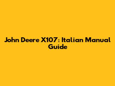 Why You Need the Italian Manual for Your John Deere X107