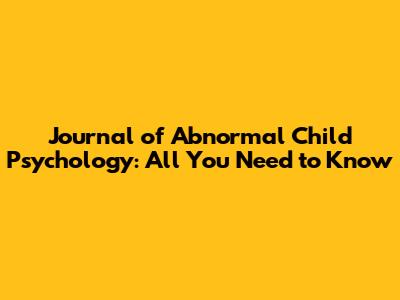 Journal Of Abnormal Child Psychology: All You Need To Know
