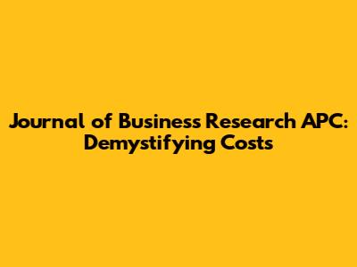 Journal Of Business Research APC: Demystifying Costs