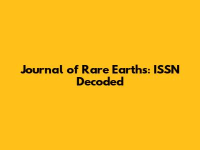 Journal Of Rare Earths: ISSN Decoded