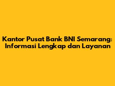 Kantor Pusat BNI Semarang: Info Lengkap & Layanan