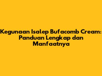Kegunaan Isalep Bufacomb Cream: Panduan Lengkap Dan Manfaatnya