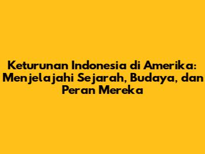Semoga artikel ini memberikan wawasan yang lebih dalam tentang keturunan Indonesia di Amerika. Mari kita terus mendukung dan menghargai kontribusi mereka, serta belajar dari kisah inspiratif mereka. Sampai jumpa di artikel menarik lainnya! Jangan lupa untuk berbagi artikel ini dengan teman-temanmu!