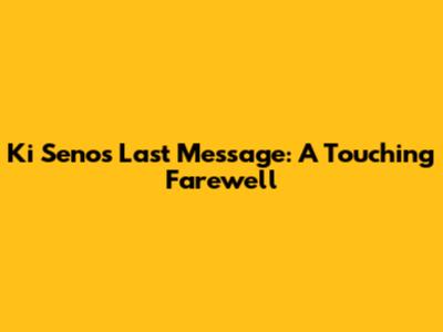 Ki Seno's Last Message: A Touching Farewell