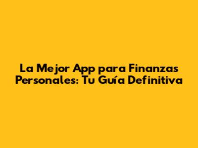 La Mejor App Para Finanzas Personales: Guía Completa
