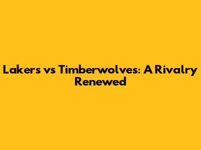 Lakers Vs Timberwolves: A Rivalry Renewed