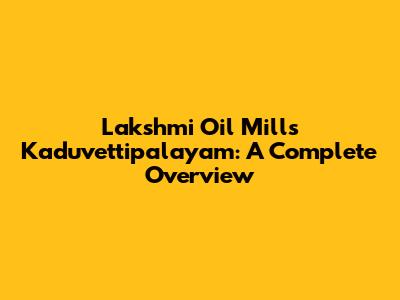 Lakshmi Oil Mills In Kaduvettipalayam: A Complete Overview