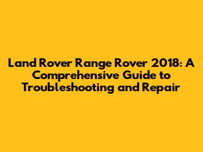 Land Rover Range Rover 2018: Troubleshooting & Repair