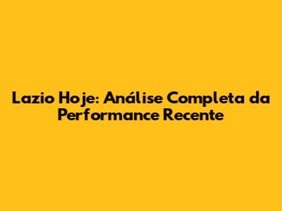 Lazio Hoje: Análise Completa Da Performance Recente