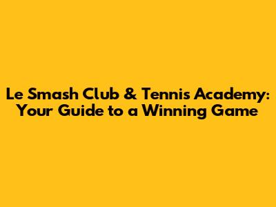 Le Smash Club & Tennis Academy: Your Guide To A Winning Game