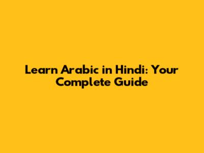 Learn Arabic In Hindi: Your Complete Guide