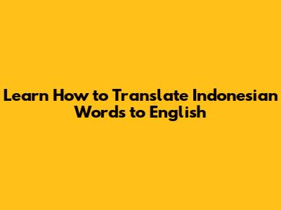 Learn How To Translate Indonesian Words To English