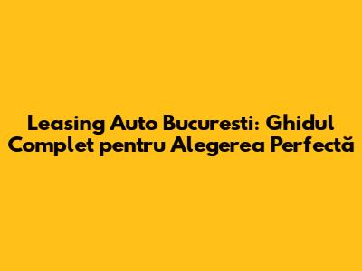 Leasing Auto Bucuresti: Ghidul Complet Pentru Alegerea Perfectă